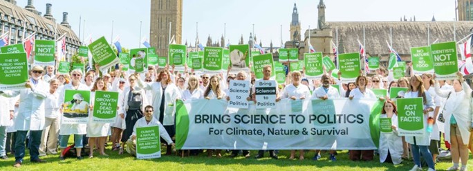 Accordingly, a growing number of scientists – from across disciplines and career stages – are finding multiple ways to be heard: building and supporting social movements through research and teaching, writing op-eds and letters, giving media interviews, being vocal on social media, engaging their MPs, and taking to the streets in peaceful protest (Perrin et al, 2025). Examples of scientist activist groups include Scientists for Extinction Rebellion, Health for XR, and Scientist Rebellion. A recent survey has indicated that many scientists would like to do more but do not feel empowered to do so, for fear of losing professional credibility or even their jobs (Dablander et al, 2024). Nor do scientists tend to receive sufficient (if any) training in communicating their science in intelligible and compelling ways, outside peer-reviewed papers. Scientific institutions have an important role to play in supporting and protecting faculty, alumni and students who choose to be activists (Gardner et al, 2021) and in reforming their own institutional practices to “practice what they preach” (such as divesting from the fossil fuel industry and dramatically cutting back their international travel).